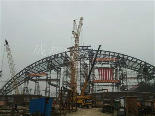 成都東客站,位于成都機(jī)場(chǎng)路東沿線上,站房建筑面積約11萬(wàn)平方米,用鋼量為30000噸。設(shè)計(jì)采用了三跨連續(xù)結(jié)構(gòu),為42m+66m+42m大跨度結(jié)構(gòu),兩側(cè)各自想外懸挑27m,屋面建筑總高39米,建筑寬度為204米…