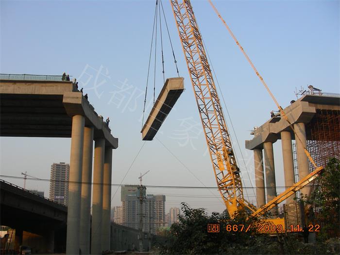 重慶天楊路跨線橋橋板吊裝