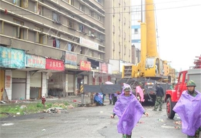 65T汽車吊在都江堰荷花池正大門旁在廢墟中成功救出幸存者